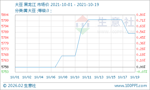 据生意社监测数据显示:10月中旬开始,国产大豆行情上涨过后,有所回落。截止10月19日,国产大豆市场均价5788元/吨,价格较上周下跌0.21%。